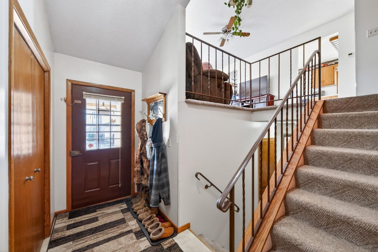 Move-in-ready 2-bed, 1-bath twin home with attached, insulated 2-stall garage. Upper level features a spacious living room, kitchen with plenty of cabinet space and stainless steel appliances, and dining room with walkout access to your deck overlooking the backyard. The lower level includes two good-sized bedrooms, a full bath with newer tile floor, and convenient laundry. Large yard with mature trees. Great location near many restaurants, shopping, schools, library, parks, trails, and much more. Best of all, there is NO homeowners association! No HOA dues to pay or HOA rules to follow. Ready to move in and enjoy!