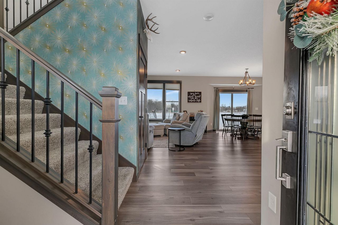 Welcome to this exceptional 2022-built home in the sought-after Lakes of Fairhaven community, offering refined living on a serene 1.49-acre setting. Backing to association-owned land and wetlands, the property provides privacy and peaceful views with no future development behind. The bright, open-concept main level is anchored by a beautifully appointed kitchen featuring a granite center island paired with quartz countertops, stainless steel appliances, and a walk-in pantry?ideal for both everyday living and entertaining. The space flows effortlessly into the dining and living areas, creating an inviting atmosphere throughout. A dedicated main-level office offers flexibility for remote work or a quiet retreat. The main-level laundry and mudroom area features a built-in hall tree with bench seating, coat hooks, and integrated storage?both functional and thoughtfully designed. Upstairs, the primary suite offers a private retreat with dual closets, a spa-inspired bathroom with dual sinks, and a tiled shower. Two additional bedrooms and a full bath complete the upper level. The finished lower level extends the living space with a fourth bedroom, bathroom, and family room, providing flexible use for guests or recreation. Outdoor spaces are well planned, with a welcoming front porch ideal for morning coffee and sunrise views, and a concrete patio overlooking the backyard?perfect for taking in peaceful sunsets. The insulated three-stall garage includes a convenient drive-through door to the backyard and is complemented by a concrete driveway for everyday convenience. Set within a well-maintained community offering walking trails, green space, and park amenities. A wonderful place to call home?inside and out!