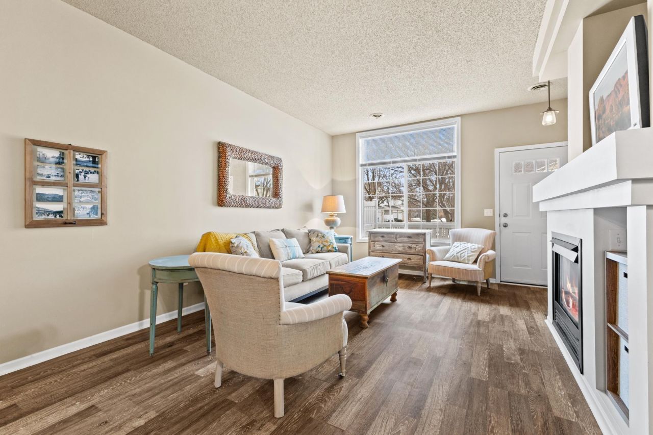 Welcome to Gleason Farms! This two bed, two bath, two car townhome is ready and waiting for you. Cozy up to the gas fireplace in the living room and chillax on the sundrenched patio! Updates include LVP floors up and down, granite counter tops, soaker tub upstairs with subway tile tub surround, comfort height toilets, storage under breakfast counter, butcher block kitchen island, insulated garage door, light fixtures, and vanity in the half bath. Conveniently located down the street from Hy-Vee and other local shopping. Come make this townhouse your home, today!