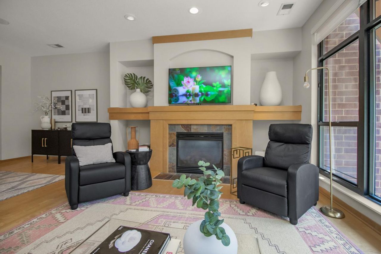 Welcome to your dream home in the vibrant Riverside neighborhood! This exquisite multilevel condo offers the perfect blend of tranquility and urban living. Nestled in a serene pocket, it's just a stone's throw away from an array of restaurants and pubs, providing endless dining and entertainment options. As you enter, you'll be greeted by an abundance of natural sunlight streaming through large windows, highlighting the spacious living area featuring a cozy fireplace?a perfect spot for relaxation. The well-appointed primary bedroom promises restful nights and privacy. Enjoy outdoor living with a private patio, ideal for morning coffee or evening gatherings. With the convenience of an attached two-car garage and easy access to walking and bike trails, this home invites you to experience the best of both worlds.Don't miss this opportunity to own a piece of Riverside paradise!