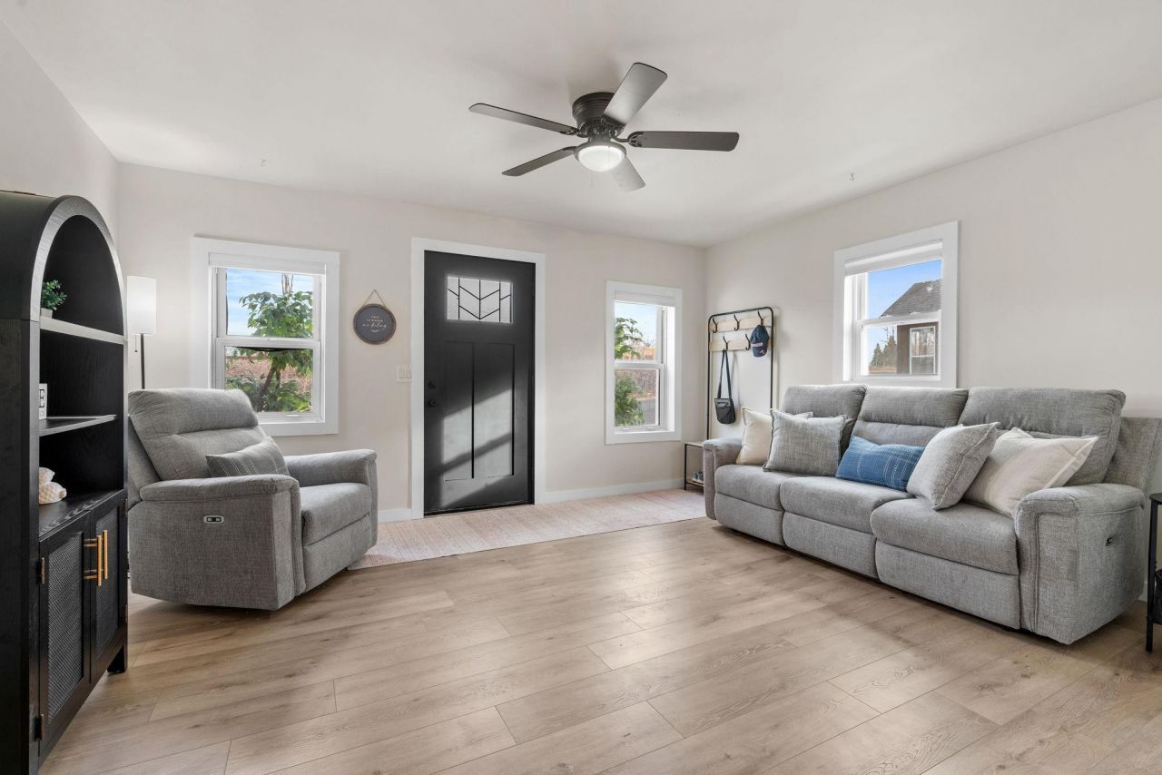 Welcome Home! This beautifully updated property offers modern finishes and a warm, inviting layout. Enjoy fresh exterior curb appeal with crisp white siding on the front and black accents, leading into a bright and open living space featuring brand-new flooring, neutral paint tones, and updated lighting throughout, even a coffee bar. The stylish kitchen includes updated cabinetry, sleek countertops, stainless steel appliances, and plenty of workspace. The remodeled bathroom shines with shiplap walls, updated vanity, and modern fixtures. Additional space in the lower level offers convenient laundry and storage. Perfect as a first home, retirement retreat, or turnkey investment property, this move-in-ready gem is full of charm and opportunity?this one is a must-see!