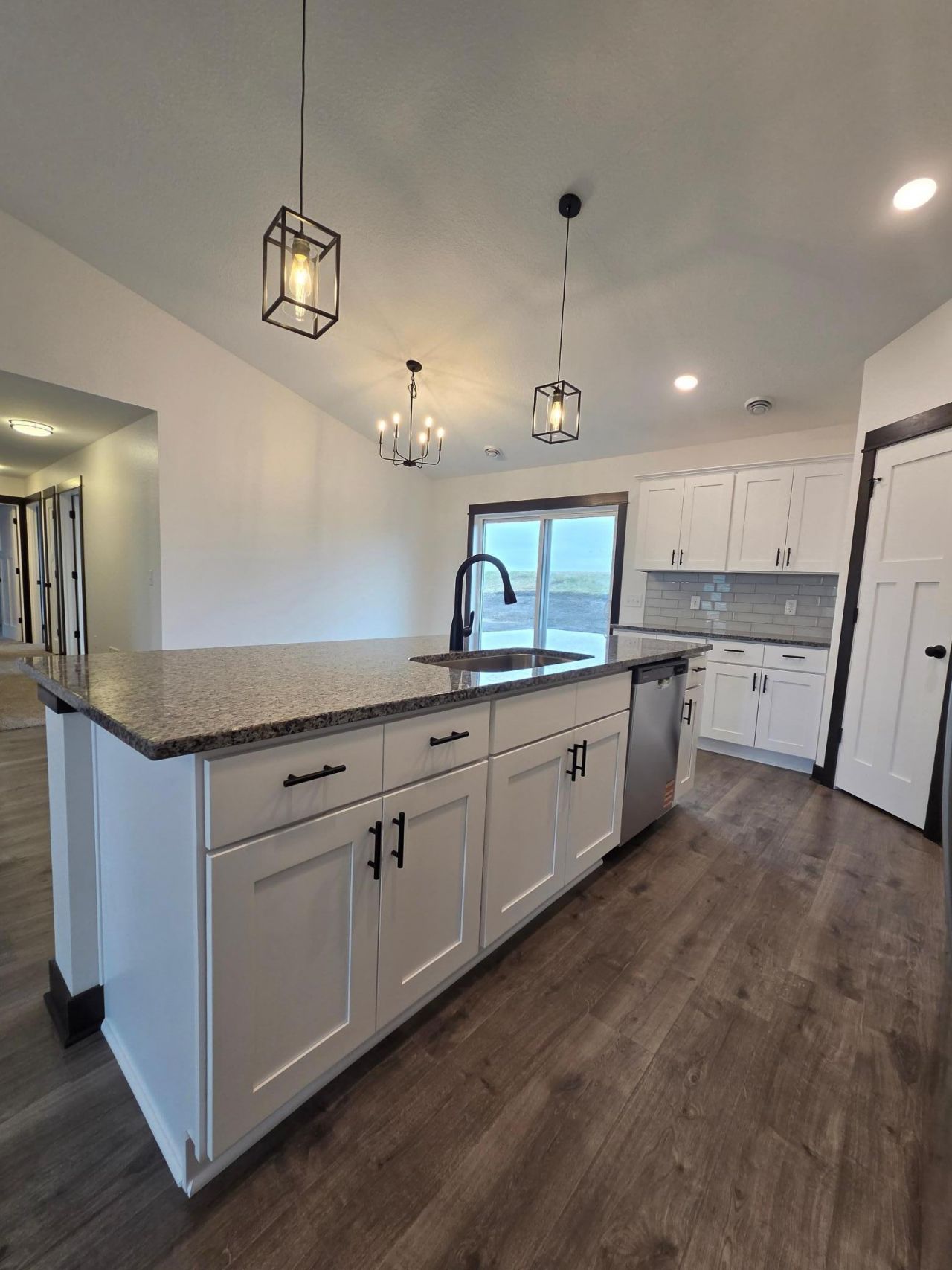 **COMPLETED NEW CONSTRUCTION - SLAB ON GRADE SPEC HOME** Affordable one level living with easy access to HWY 14. This slab on grade floor plan features an attached 3 car garage, open floor plan for living room, kitchen and dining room with vaulted ceiling. Finishes included are Granite countertops, stainless steel appliances, soft close drawers, pantry and tile backsplash in kitchen. Private primary suite with walk in shower, walk in closet and dual sinks, Quartz tops in both bathrooms, laundry/mud room off of garage entrance plus much more. Inquire about the 1-0 Preferred Lender Paid Rate Buy Down.