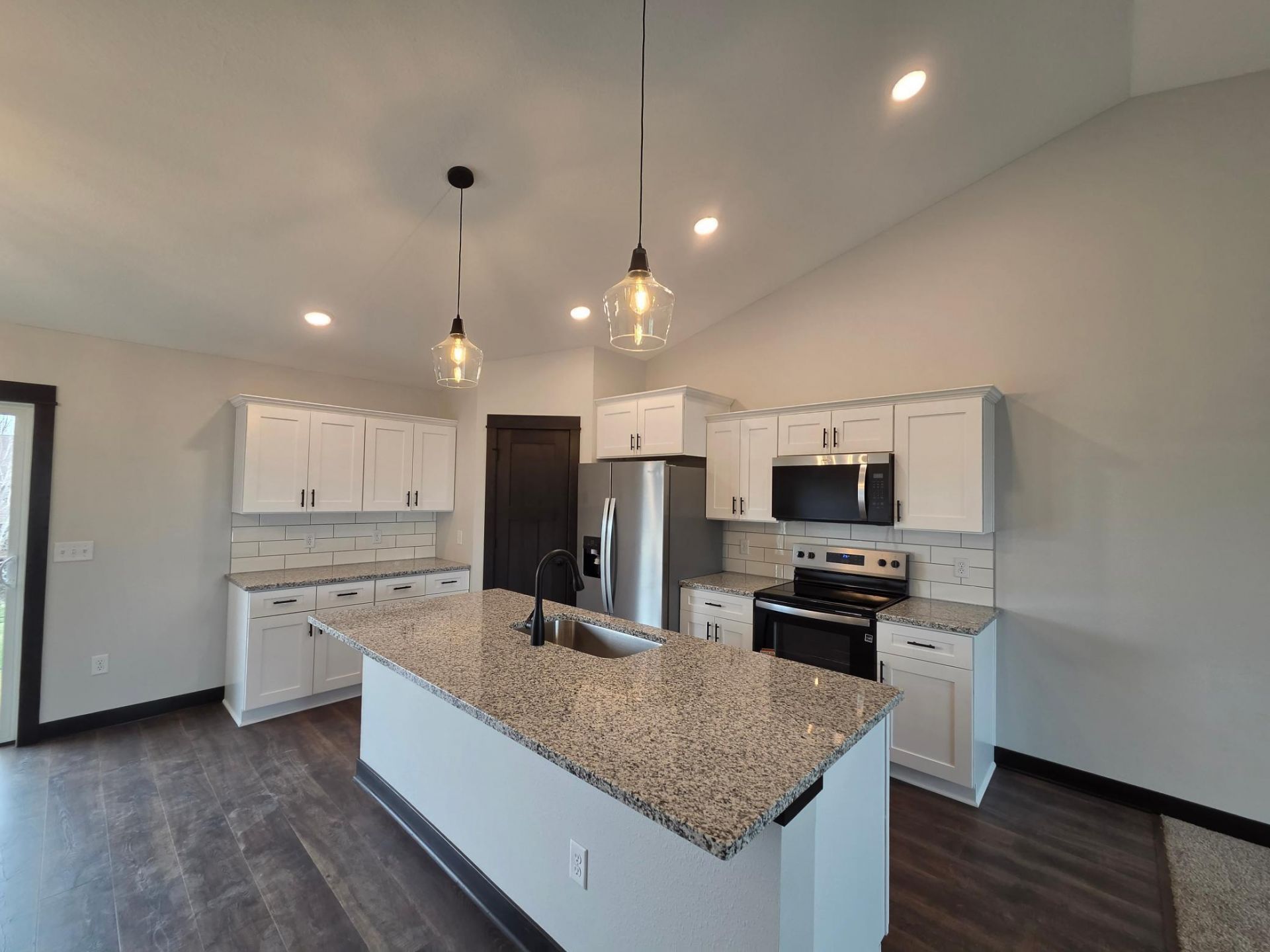 **COMPLETED NEW CONSTRUCTION - RAMBLER W/FULL BASEMENT SPEC HOME** One level living lookout rambler with a full unfinished basement. This home features attached 3 car garage, open concept floor plan for living room w/gas fireplace, dining and kitchen. Finishes include Granite countertops, soft close drawers, stainless steel appliances, tile backsplash and pantry in kitchen. Private primary suite with walk in shower and dual sinks, Quartz tops in bathrooms, laundry/mud room off of garage entrance. Unfinished lower level offers plenty of storage space and contains possible future 4th & 5th bedrooms, bathroom and family room. Inquire about the 1% preferred lender incentive.
