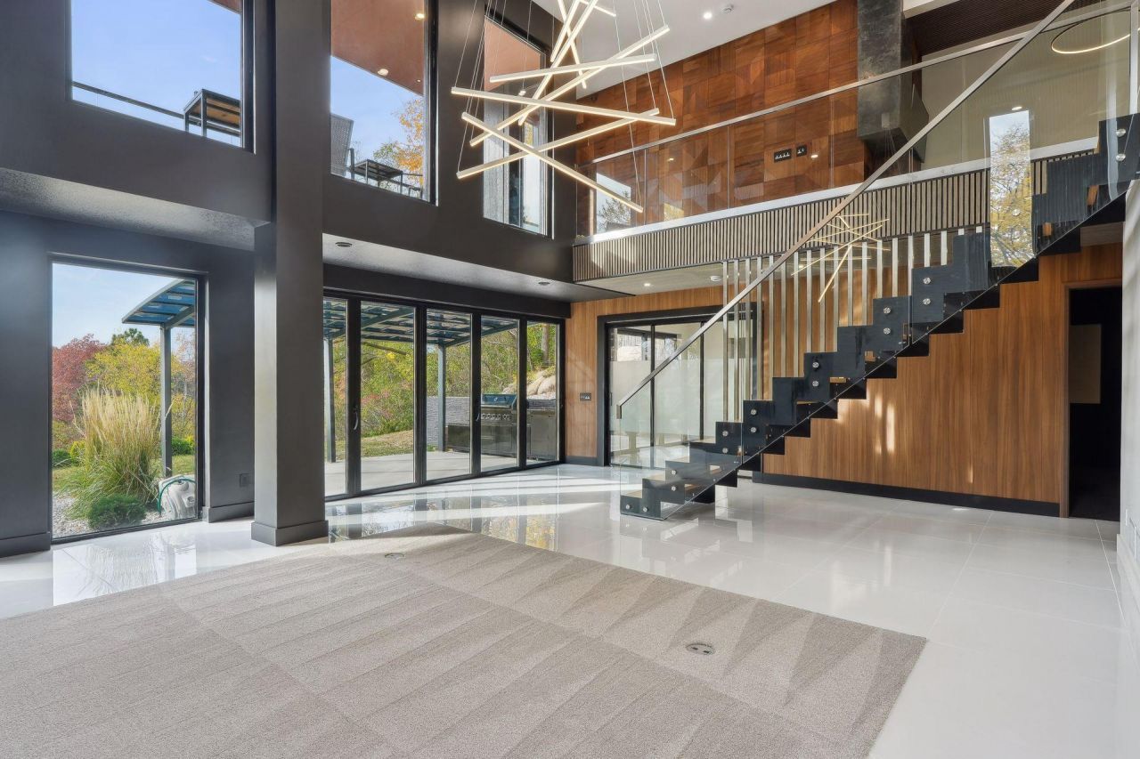 Exquisite Contemporary Home Overlooking Lake Emily and Owasso. Step into modern luxury with this stunning contemporary home, perfectly perched on an elevated .42-acre lot that offers breathtaking views of Lake Emily and Owasso. Enjoy deeded access with a private dock on Lake Owasso, combining seclusion with the beauty of lakeside living. As you enter, natural light floods the expansive open floor plan, accentuating sleek lines and designer finishes throughout. The spacious living area features high ceilings and panoramic views, creating an inviting atmosphere ideal for both entertaining and relaxation. The gourmet kitchen is a chef's dream, equipped with top-of-the-line appliances, custom cabinetry, and a large granite island, making it perfect for culinary creations and casual gatherings. Retreat to the primary suite, a tranquil sanctuary complete with a luxurious spa-like bathroom that boasts a standalone stone tub, a walk-in dual shower, and a full glass sauna. The lower level is an entertainer's paradise. A striking full glass and steel staircase leads to a large, open two-story family room that seamlessly overlooks the patio and outdoor kitchen. This level also includes three additional bedrooms, an office, a media room, and a cozy Amusement room, providing ample space for family and guests. This one-of-a-kind home is a must-see, located close to parks, lakes, trails, shopping, and dining. Welcome home!