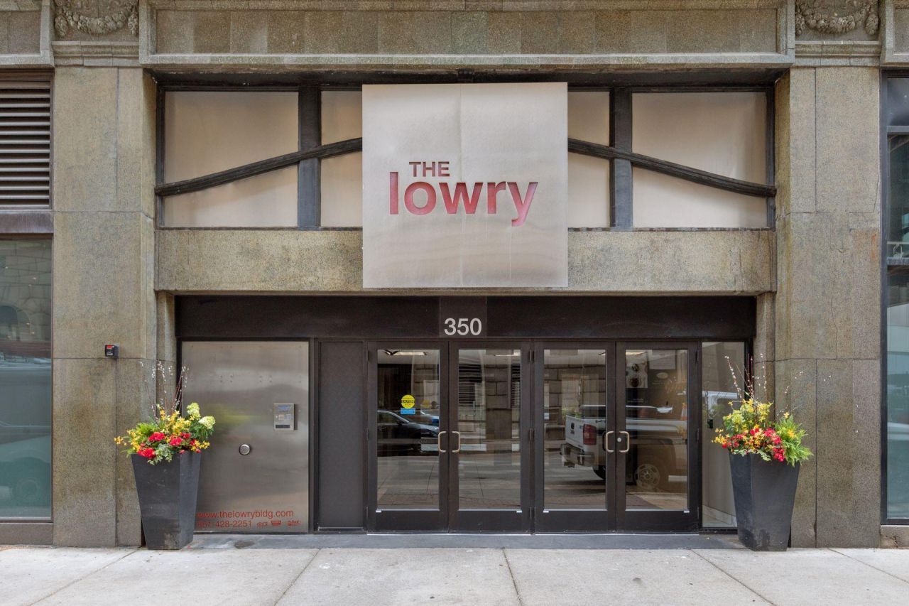 Live stylishly in this 9th-floor condo at The Lowry, an iconic 1896 St. Paul landmark reimagined for modern urban living. Surrounded by 9-foot industrial-style windows, this 883 sq ft unit is bathed in natural light and offers a sliver view of the Mississippi River.With soaring 13-foot ceilings and raw concrete columns, the space blends historic character with modern design. The sleek kitchen features newer appliances, white custom cabinetry, and a quartz-topped center island?perfect for entertaining or quiet mornings at home.The spacious bedroom includes a walk-in closet and a fresh, well-appointed bath. You'll also love the full-size in-unit washer and dryer, pet-friendly policies, and attached contract parking (separate fee).Located in the heart of downtown St. Paul, you're just steps from the Xcel Energy Center, Landmark Center, Central Library, Kincaid's, Meritage, and more. If you're craving vibrant city energy paired with timeless architecture?welcome home.While this unit does not own a parking garage, for $213/month you can contract parking at the connected Lowry ramp. Or several nearby ramp locations for a fee.