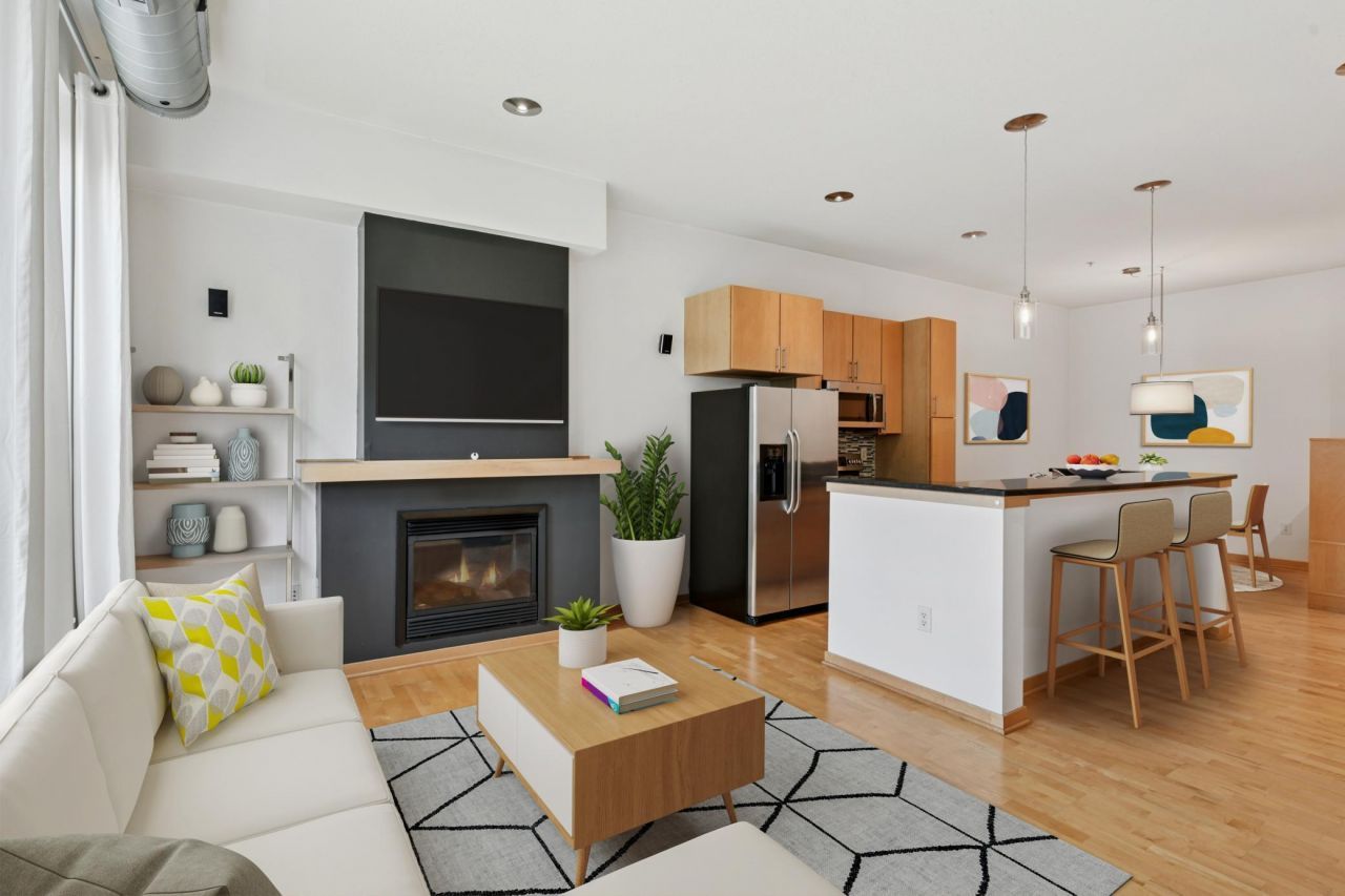 Welcome to Village in the Park Lofts, where style, comfort, and convenience meet in the heart of St.Louis Park! This main-level condo offers an exceptional layout that maximizes every inch of space. Theopen floor plan flows effortlessly from the kitchen with center island, to a cozy dining area, and into aspacious living room anchored by a beautiful gas fireplace. Enjoy south-facing light throughout the day,with views of the quiet courtyard framed by picturesque trees that add both charm and privacy. Stepoutside to your private balcony and soak in the serene setting?truly a rare find so close to the city.Thoughtful features include a Nest Smart Thermostat, LED lighting, water filtration, built-in surroundsound, and quality kitchen appliances (range, microwave, dishwasher), and a new compressor in the airconditioning unit. Exceptional storage is another highlight, with custom cabinetry and a generous amountof closet space not often found in city living. The unit also includes heated, secure underground parkingwith an upgraded raised steel locker for additional storage. Association dues cover fast fiber-opticinternet, making remote work or streaming a breeze. Location doesn't get better?steps from the futureLight Rail station, with easy access to Hwy 100 & Hwy 7, shopping, dining, parks, and miles of Cedar LakeTrail. Just minutes to Downtown Minneapolis, Lake Bde Maka Ska, and Lake Harriet. Don't miss this rare opportunity for a blend of convenience, modern updates, and everyday comfort!