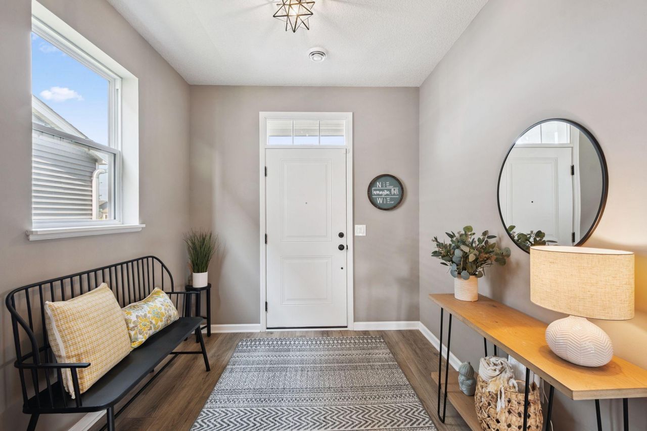Beautiful 2020-built home for sale in Farmington, MN, located in the desirable Fair Hill Estate at North Creek community. This modern, open-concept house features stainless steel appliances and a stylish tiled backsplash in the kitchen. Enjoy spacious, large bedrooms all on one level with walk-in closets for extra storage. Includes a dedicated home office for remote work or study and a separate laundry room for convenience.The beautifully landscaped backyard offers an expanded patio and access to scenic walking trails, parks, and green spaces?perfect for outdoor enthusiasts. This Farmington home combines comfort, style, and functionality in a prime location. Ideal for families or professionals looking for a move-in ready property with access to community amenities and natural beauty. Don't miss this opportunity in the North Creek community, Farmington MN real estate market.