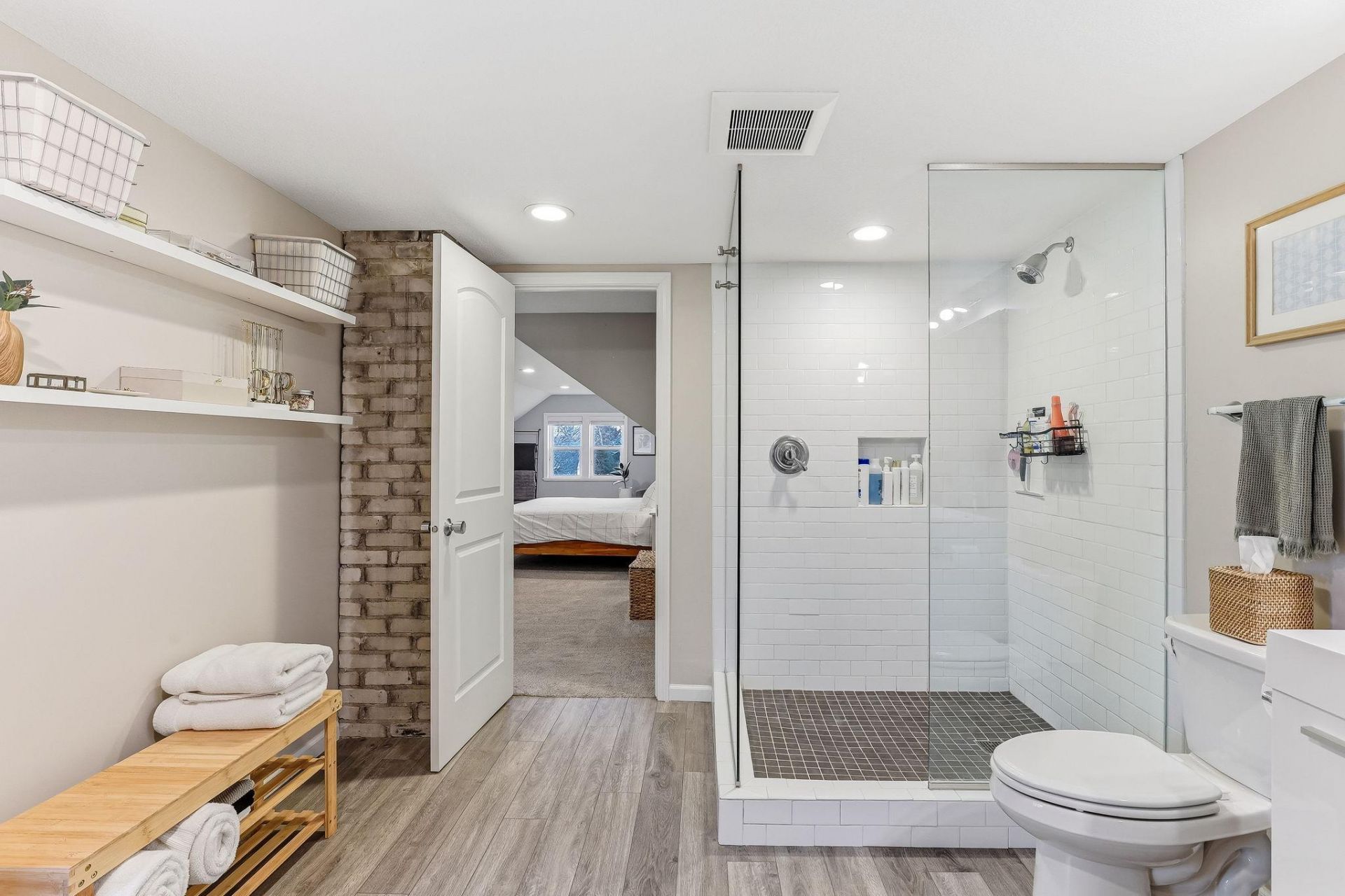Picture yourself unwinding on the spacious front porch, watching neighbors and dog walkers enjoy Sibley Park just across the street. Inside, the open-concept main level features a beautifully remodeled kitchen and updated bathrooms. Upstairs, you'll find a massive primary suite complete with a spa-like bathroom. Out back, a private, fully fenced yard and deck offer a peaceful retreat. This charming 1917 built home blends timeless character with modern updates, showcasing original hardwood floors, a built-in dining room buffet, and unpainted trim and millwork that add warmth and authenticity throughout. The unfinished lower level presents excellent potential to build equity, while the upper level offers generous closet space, large windows that fill the home with natural light, and a stunning primary bath. Move-in ready and full of charm, this home is ready for its next owners to enjoy and cherish just as much as the last.