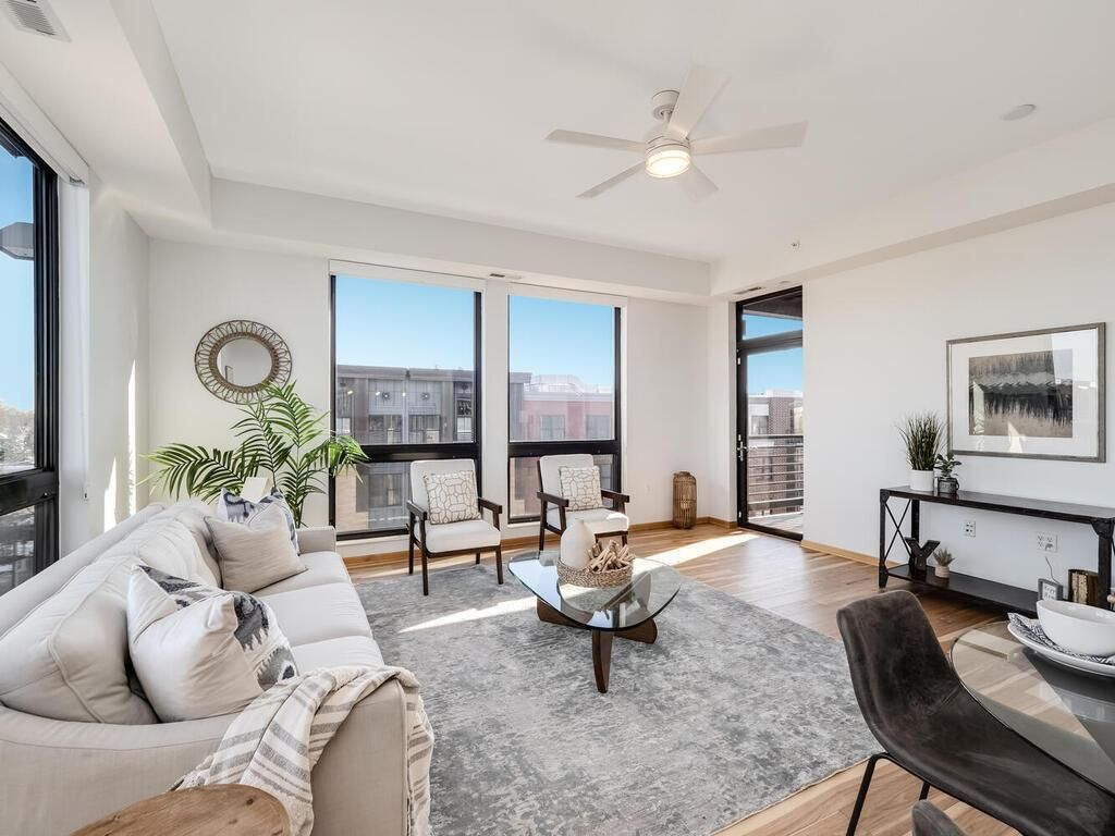 Nestled in the vibrant Excelsior and Grand neighborhood, this remarkable fourth-floor condo floor plan in The Grand Condominiums is a rare gem. Situated on the building's southeast corner, this spacious and light-filled unit offers two bedrooms, a spacious den, two bathrooms, two underground heated parking spaces with private storage, and EV charging capabilities.This corner unit boasts 10-foot ceilings, floor-to-ceiling windows on the south and east sides, an open floor plan, elegant hickory wood floors, and stainless steel appliances. The expansive 7'4 kitchenisland comfortably accommodates four, while the large 13'3x 12'5 den features French doors. The primary bedroom includes a walk-in closet and an ensuite bathroom with a separate private shower and water closet. A secondary bedroom and a large 3/4 bath complete the living space. Additionally, there's a laundry area equipped with a full-size washer, dryer, and laundry tub.The Grand Condominiums offers a range of amenities to enhance your living experience. Enjoy an outdoor pool and hot tub, a cozy fire pit, BBQ gas grills, a fitness room, a community room, and a guest suite.Conveniently located adjacent to Wolfe Park, this condo provides easy access to various recreationalactivities. Stroll along walking and biking trails, play pickleball on the courts, immerse yourself inlive music, relax in picnic areas, explore playgrounds, and visit the St. Louis Park Rec Center.Moreover, you'll find easy access to grocery stores, coffee shops, breweries, lakes, nature areas,shopping centers, and the upcoming light rail.