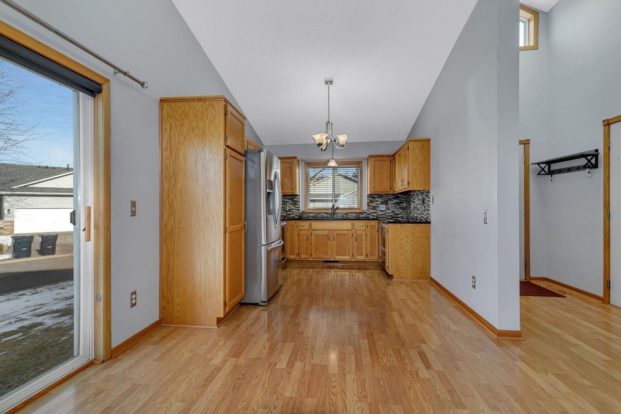 This beautifully updated tri-level twin home combines style, comfort, and convenience in a fantastic location. The remodeled kitchen features granite countertops, tile backsplash, and upgraded stainless steel appliances, while the main and upper levels showcase hard-surface flooring throughout. Upstairs you'll find a spacious living room and a primary bedroom with direct access to a walk-through bath with dual vanities. The lower level offers a generous family room with a corner gas fireplace and walkout access to the patio, along with a third bedroom. Additional highlights include front-load washer and dryer, abundant crawlspace storage, and an attached double garage with a durable epoxy floor. Major exterior updates include a new central air conditioner in 2024 and new shingles and siding in 2025. Situated on a corner lot near Monticello schools and Pioneer Park, this home offers both thoughtful updates and a convenient setting.