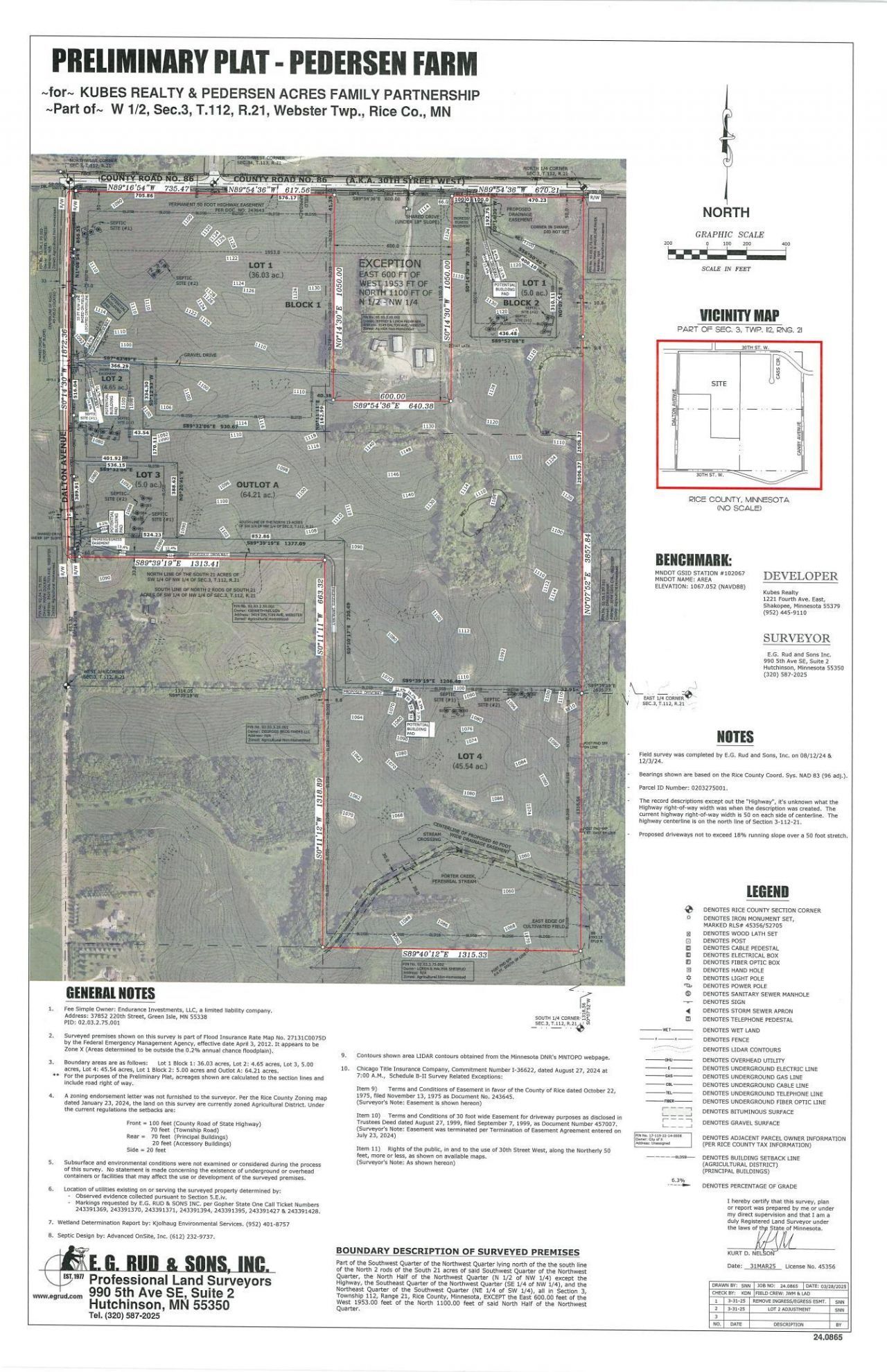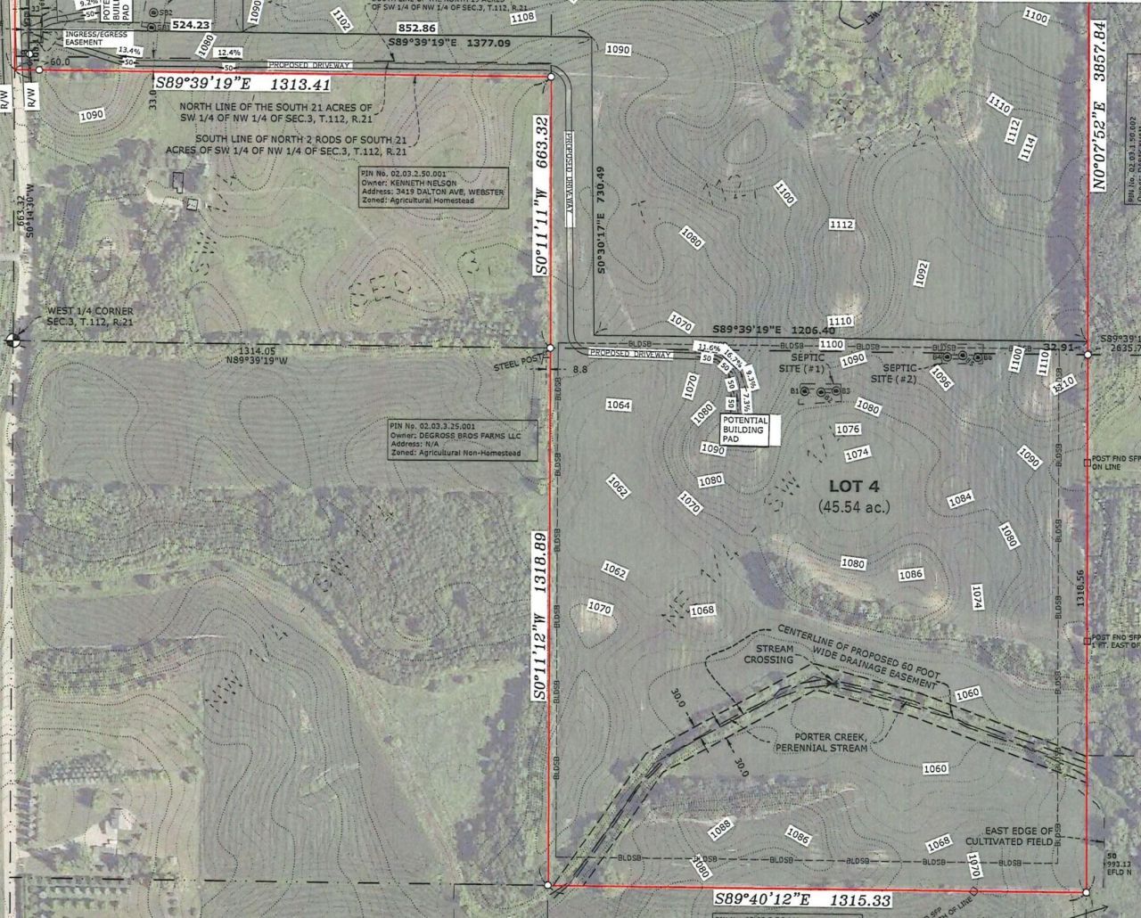 Wonderful 45.54+/- acre lot in great location, Porter Creek runs through property, some trees on lot, very private setting, nice high lot with long views, great access to 35W & metro area, walkout, easy to build on, call for maps and details, also call for home package pricing, come see!!