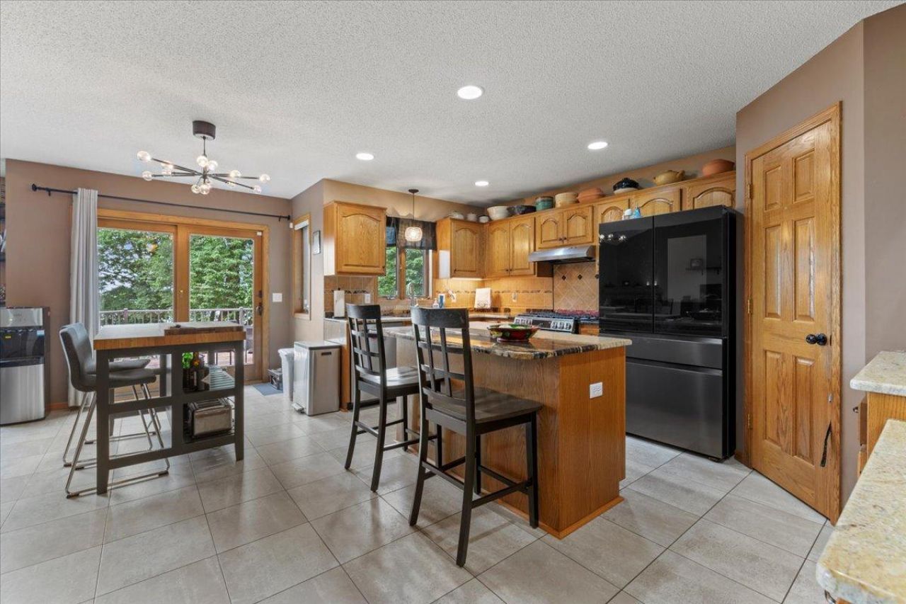 217' of Howard Lake lakeshore! Enjoy magnificent south facing lake views from this 5 bedroom, 5 bath home on one full acre! Open floor plan, 2 fireplaces, vaulted ceilings & lots of natural light. Kitchen features center island, pantry, tile floors & backsplash. Main floor primary suite boasts vaulted ceiling, ensuite bath with separate soaking tub and shower, walk-in closet and private deck. Upper level with 2 bedrooms and loft/office and walk-out lower level with wet bar and 2 additional bedrooms. New furnace, AC, water softener, water heater, appliances, garage door opener & more. Oversized 3-car attached garage with epoxy floors & storage above. Additional 32x26 detached garage with 14x10 heated workshop, floor drain & electric car charger. Concrete drive, 2 decks, nicely landscaped, mature 1 acre lot. Dock included. Must see!