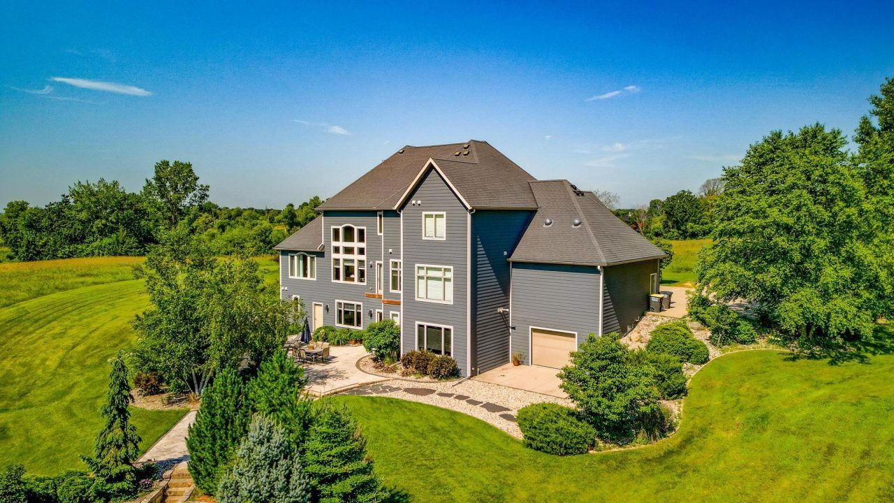 Luxury living in the countryside: The best of both worlds! This 5-bed, 5-bath home, featuring over 6,000 fin sq ft of modern touches, rests on over 12 acres of beautiful land. To name a few highlights, the main level greets you with vaulted ceilings, a great room featuring a dual-sided fireplace, and a spacious kitchen with panel-ready appliances. Here, you will also find a discreet, two-way door that leads you to your pantry, along with an additional access to your basement and garage. The main level also includes an impressive primary and ensuite with a jetted tub, separate walk-in shower, dual sinks, and large walk-in closet. Upstairs, you will find three additional bedrooms directly attached to a bathroom, as well as a laundry room for your convenience. The basement is equally expansive with its custom bar, furnished theater room, private office, gym, and guest bedroom, coupled with a walkout that leads you to the beautiful patio space/outdoor oasis. The home also features a 3-stall attached garage with an additional 4th stall tucked underneath. To top it all off, the land surrounding the property contains grass that can be harvested! Come check this one out today!