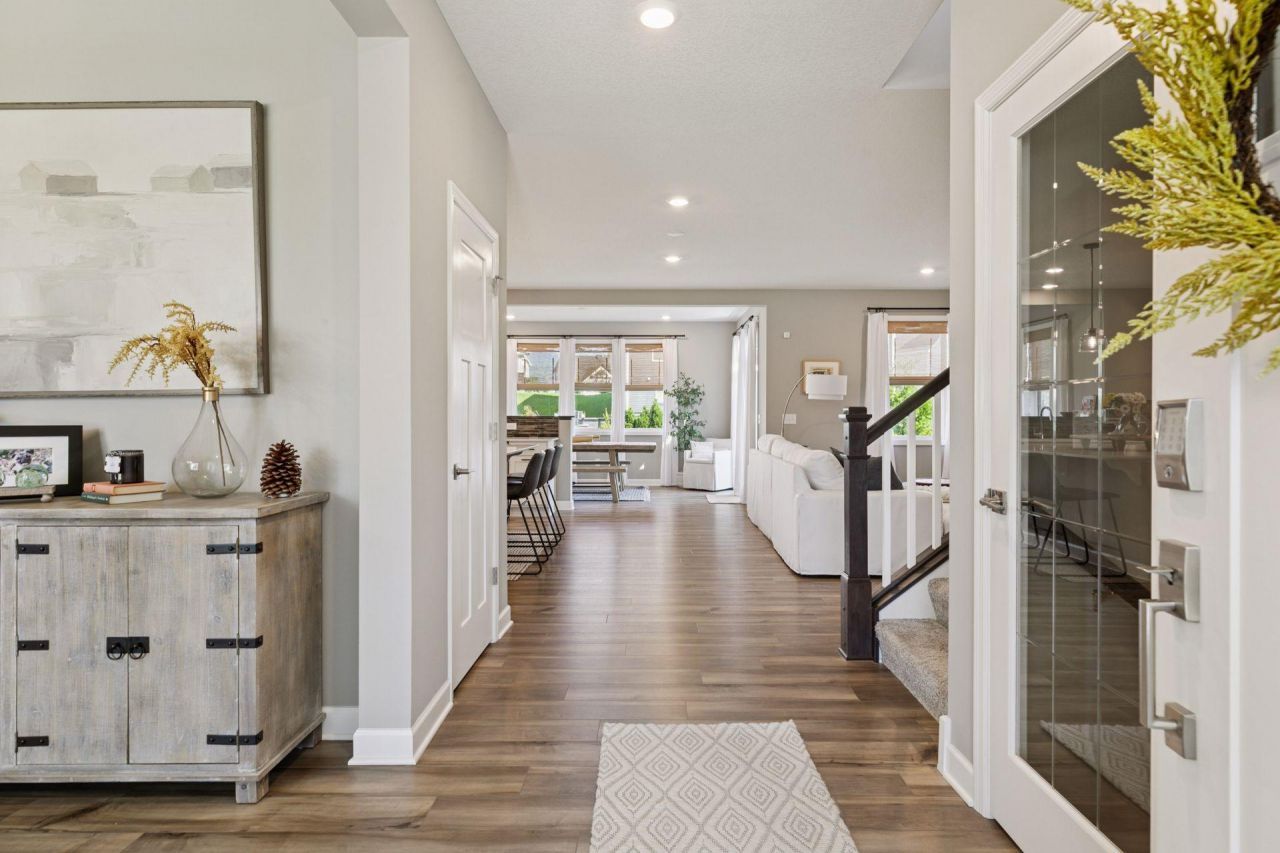 The Seller is offering up to $15,000 towards closing costs. Come discover this stunning 2-story home in the high demand Enclave at Settlers Ridge neighborhood?just down the road from the Vikings Training Facility in Inver Grove Heights (ISD 196/Eagan HS). Built in 2023, this property is tastefully designed with stylish finishes and neutral colors throughout. The exceptional curb appeal immediately stands out with beautiful landscaping and a tasteful façade featuring both stone and James Hardie siding. Inside, a bright and open floor plan offers versatile spaces for both everyday living and entertaining. The kitchen shines with white cabinetry, quartz countertops, tile backsplash, stainless steel appliances, gas range, wall oven and a large center island with additional seating. Enjoy sunny mornings in the informal dining area or cozy evenings by the gas fireplace in the great room. A main-level bedroom offers flexibility for guests or a private home office. For your convenience, 4 bedrooms and 3 bathrooms are located on the upper level of the home along with the laundry. The spacious primary bedroom offers his-and-hers walk-in closets as well as a private ensuite with a shower, soaking tub and linen closet. The fully finished lower level provides ample recreational space plus an additional bedroom with a walk-in closet. Storage is abundant throughout the home, including a large mudroom walk-in closet and pantry on the main level, eight upper-level closets, and a separate lower-level storage room. Relax outdoors on the stamped concrete patio or watch the sunset from your covered front porch. The backyard is newly fenced and includes an irrigation system?everything is complete and ready to enjoy from day one. Close proximity to Minneapolis?Saint Paul International Airport, TCO Stadium, Lebanon Hills Regional Park, Mall of America, and Minnesota Zoo, with convenient access to I-494 and HWY-3.