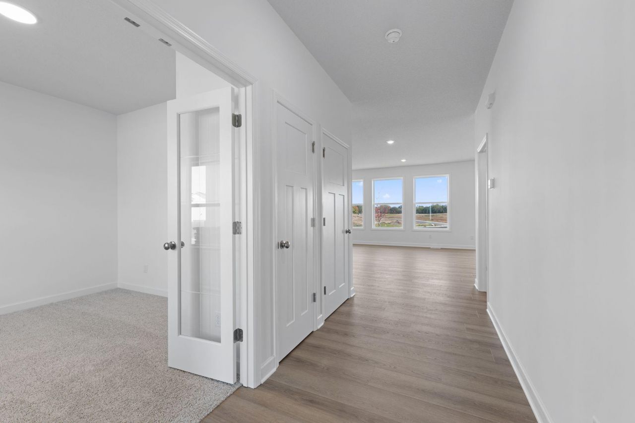 Home is underconstruction! Located in the popular Willowbrooke community, the Sinclair features 4 bedrooms, 2.5 baths, and 2,468 square feet of well-designed living space. Step inside from the covered front porch to the private office with double doors, family room with LVP flooring and cozy gas fireplace, and a stunning kitchen with large island, quartz countertops, subway tile backsplash, stainless steel appliance package with a gas range, and sleek black hardware. Upstairs, the light-filled owner's suite features a serene bath with a freestanding soaking tub, a shower, dual vanities, and a walk-in closet. The upper level is completed by three spacious bedrooms with walk-in closets, a large laundry room, a walk-in linen closet, and a full bath. The unfinished lower level offers room for immediate storage and future expansion. Sod, landscaping, and a lawn irrigation system are also included! Set between the Rice Creek Chain of Lakes and I-35E, the community is enveloped in a gorgeous natural environment, yet offers easy access to the Twin Cities metro area for shops, restaurants, entertainment venues, and more.