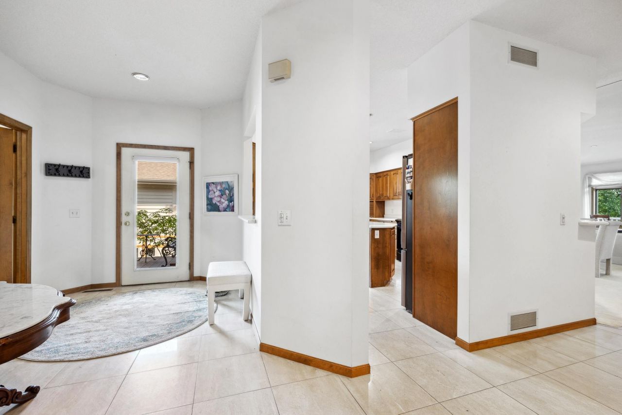 Executive Walk-Out Townhome with Lake Views and Wooded Privacy Discover luxurious, one-level living in this exceptional walk-out townhome, crafted by David Carlson, located along the serene shores of Staring Lake. This home offers a perfect blend of upscale amenities and natural beauty, ideal for those looking to downsize without compromising on quality or comfort. Main Level Features: The bright and airy eat-in kitchen serves as the heart of the home, featuring a large center island that's perfect for meal prep and casual dining. The main floor also includes a spacious living room, designed for both everyday living and relaxing evenings by the fireplace. This area flows seamlessly into a hand painted golf putting room where. The main floor master suite is a private retreat, complete with a walk-in California Closet and direct access to the outdoor living spaces. A dedicated home office on this level offers a quiet space for work or personal projects, while tile floors in the entry, kitchen, laundry, and mudroom add class and sophistication. Walkout Lower Level: The lower level expands the living space with an additional bedroom and a large family room that opens onto a patio, perfect for enjoying the tranquil surroundings. Built-in speakers throughout the home enhance the entertainment experience. An unfinished storage room provides ample space for seasonal items, and the opportunity to create a fitness room or craft room tailored to your needs. Nestled in a peaceful, natural setting, this home offers direct access to Staring Lake's 167 acres and scenic walking trails, perfect for outdoor enthusiasts. Despite the tranquility, you're just minutes away from Eden Prairie's fitness trails and the Eden Prairie Mall. With quick access to Hwy 5/212, you're only 25 minutes from the airport, making this location both serene and convenient.