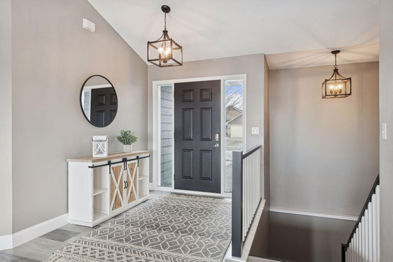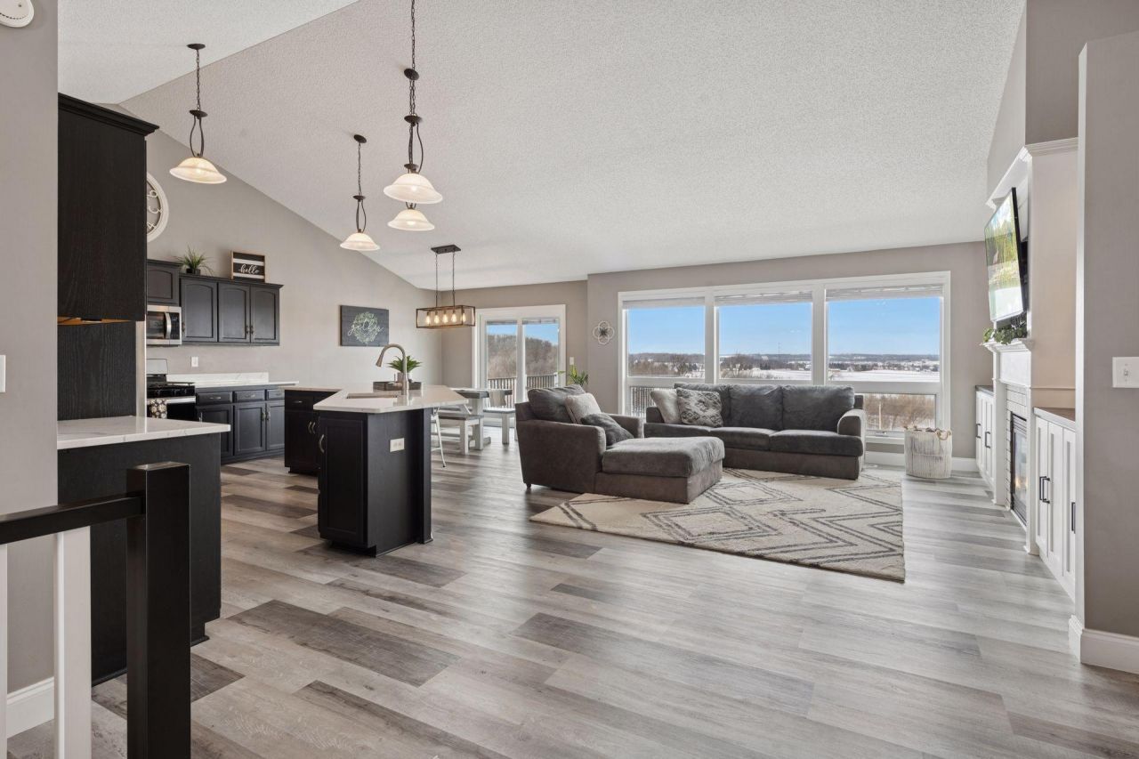 Exceptional value awaits in this clean and fully updated 5BR/4BA walkout rambler situated on a premium lot w/ unparalleled views of the river valley and Belle Plaine. Step inside to a spacious layout highlighted by soaring vaulted ceilings, oversized windows that flood the home with natural light, a cozy living room fireplace w/ hand crafted built-ins, a well-design kitchen w/ quartz countertops, walk-in pantry & a massive center island perfect for gathering, dining room w/ deck access, a convenient mudroom right off the garage w/ laundry & powder room, an owner's suite w/ private bath, and two additional bedrooms that share a 3rd bathroom. The U-shaped stairway leads to a fully finished lower level that continues to impress with a custom wet bar w/ granite (basically a 2nd kitchen), a spacious family room w/ custom floor-to-ceiling accent wall, game room, another two bedrooms and 4th bath w/ custom tile walk-in shower, and a den for private office or additional storage needs. Outside extras include a front stamped concrete patio, upgraded garage doors, concrete driveway, and a fenced backyard w/ playset, a fresh walkout concrete patio & dedicated fire pit, 2021 built composite deck?making it the perfect space for children, pets and entertaining. This property is turn-key and ready to welcome its next owners ? come experience the views and amenities for yourself.