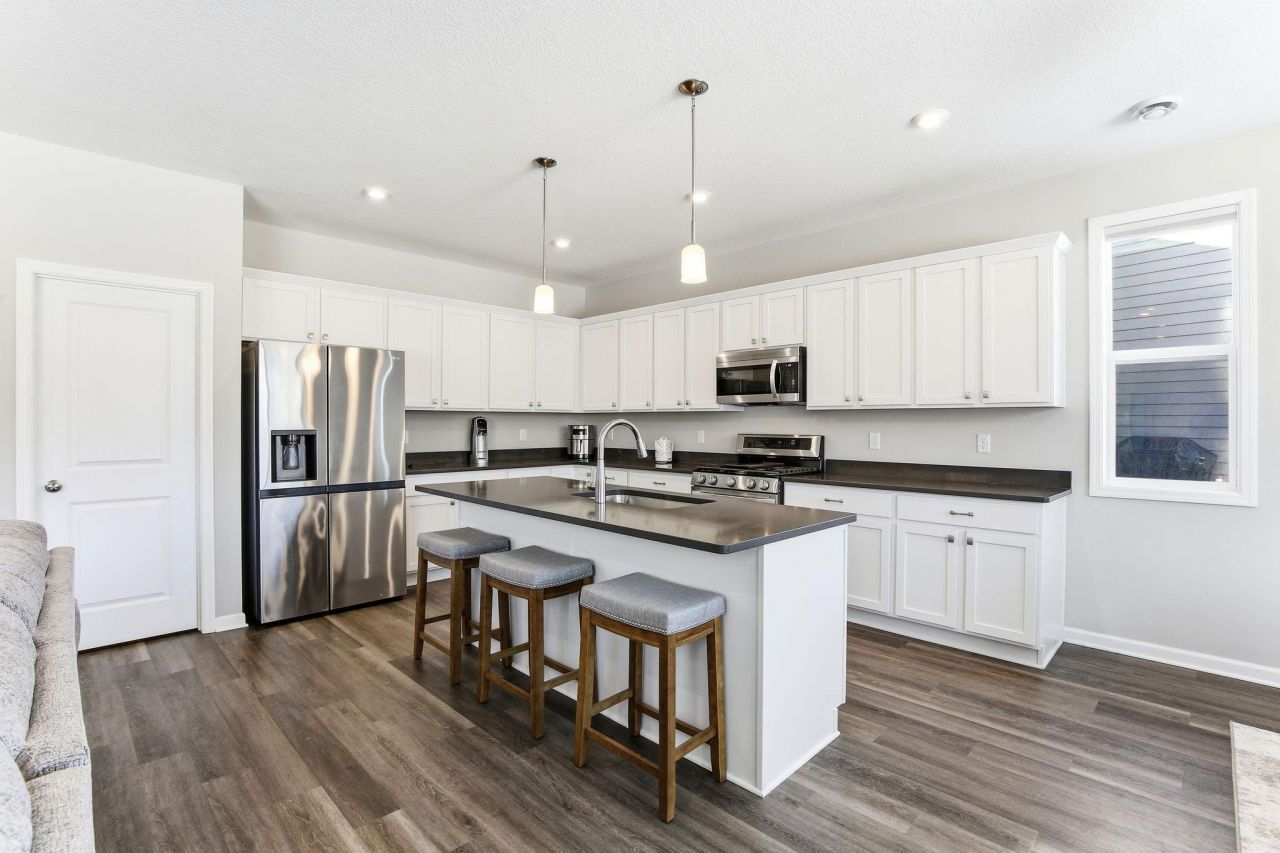 Welcome to the Riverwalk Community! Centered in a quiet and well-established neighborhood within walking and biking distance to the Coon Rapids Dam Regional Park, Caribou Coffee, and many other parks along the Coon Rapids trail system!The bright and sunny main level features an open floor plan. A cozy gas fireplace with stone surround anchors the living room, and the spacious kitchen has a large center island and walk-in pantry. There is also a convenient office/flex room currently used as a home gym and mudroom with built in coat hooks and storage.There is a family room on the upper level and all three bedrooms are on this level. The primary suite features a walk-in closet and private bath with double sinks. There is an additional full bath on this level and laundry room with rough-in for future utility sink. You will love all of the upgrades to this Smart-Home, including Luxury Vinyl Plank Flooring throughout, ceiling fans, black-out shades in the bedrooms, and full house gutters with clog-free rain guards! Low HOA fee includes irrigation system, garbage, recycling, lawn mowing and winter snow removal! Welcome Home!