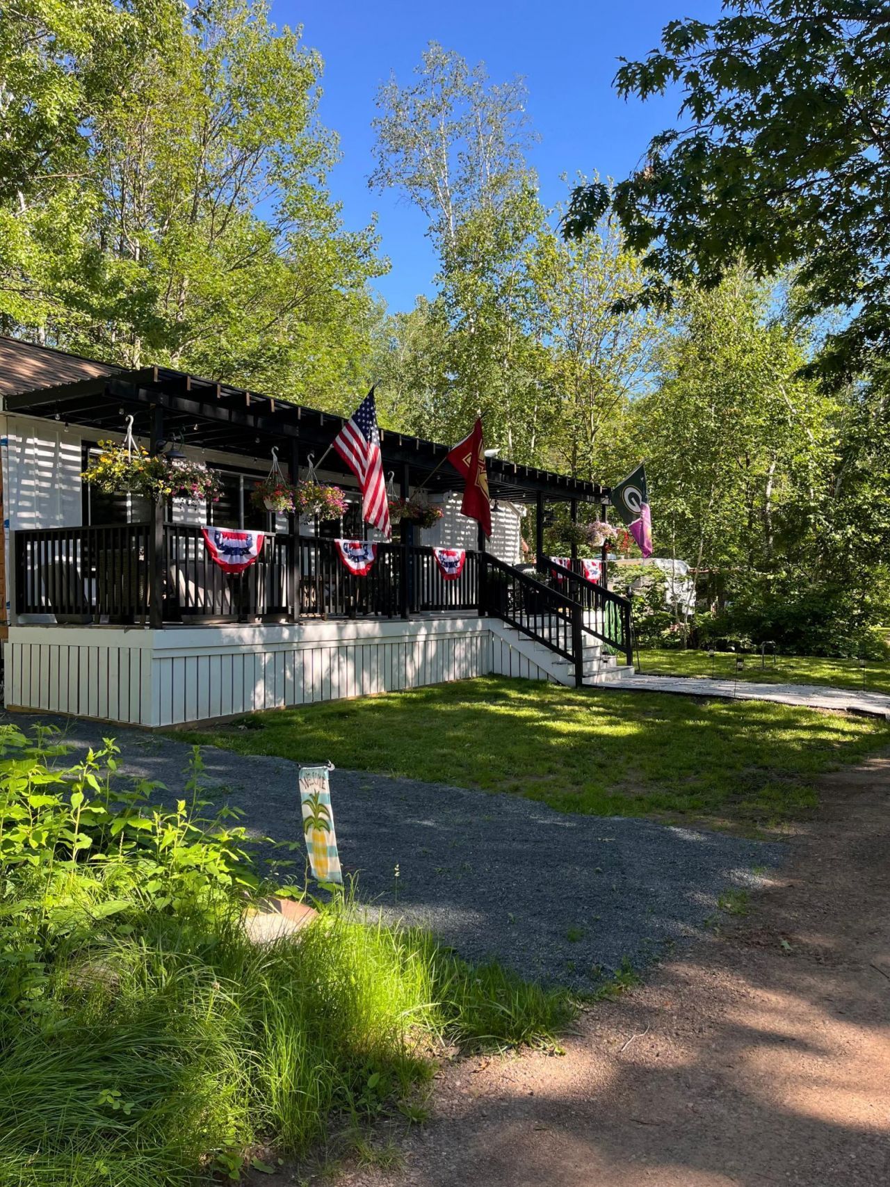 This spacious 2000 Breckenridge park model with an expansive 14x28 addition offers a remarkable four-bedroom layout?providing the space, comfort, and flexibility to host family and friends while enjoying the Northwoods lifestyle. The addition seamlessly expands the living area and includes two private bedrooms, complementing the main bedroom and separate bunk room in the park model to create a true multi-room retreat rarely found in seasonal properties. The thoughtful layout comfortably sleeps eight, making it ideal for hosting family, guests, or creating a relaxing seasonal escape with room for everyone.Step outside to the inviting front porch?perfect for morning coffee, quiet evenings, and relaxing after a day of exploring. In the back, a private deck overlooks the peaceful natural setting bordering the state park, creating a tranquil backdrop where wildlife sightings and quiet surroundings are part of everyday life. The property is tucked into a quiet area of Pathfinder Village, offering both privacy and access to the community's recreational amenities and surrounding trails.With 50-amp electric service and a compliant holding tank already in place, this property is fully equipped for immediate enjoyment. A golf cart is also available and may be negotiated separately outside of the property sale, offering added convenience for enjoying everything Pathfinder Village has to offer.